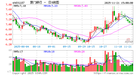 | 19 | 601187 | 厦门银行 | 64040238 | 4.987 | 2025-09-30 |